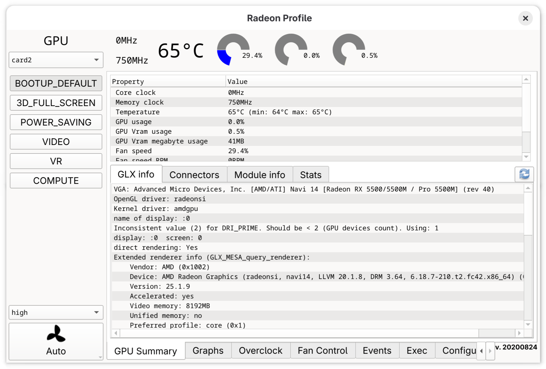 IMPORTANT: Set high in radeon-profile before running GPU intensive programs with DRI_PRIME=1. Otherwise, the system crashes.